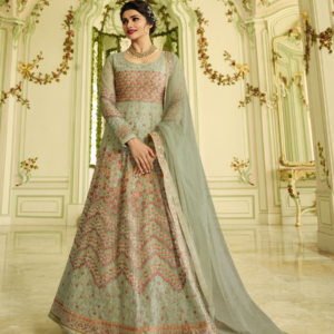 Kaseesh Premium Women's Embroidered Georgette Unstitched Gown, Party Wear, Wedding Dress